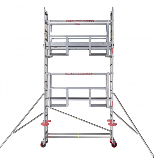 Deze smalle aluminium rolsteiger RSAGR3010 van ALGA is speciaal ontworpen om veilig te kunnen werken op hoogte in de bouw en industrie. Deze aluminium steiger en alle onderdelen zijn gemaakt van lichtgewicht hoogwaardig aluminium. De opbouwframes van deze rolsteiger zijn volledig rondom gelast. Ook de sporten zijn rondom antislip uitgevoerd. Door de opbouwmethode met voorloopleuningen voldoet je steiger niet alleen aan hoogste veiligheidseisen✓ maar je bereik je ook razendsnel en eenvoudig een werkhoogte van 12 meter. De stabilisatoren zorgen voor extra stabiliteit. De kantplanken zijn standaard van aluminium, en dus extra stevig. Dankzij het platform met luik bereik jij veilig de werkvloer om de klus veilig te klaren.✓