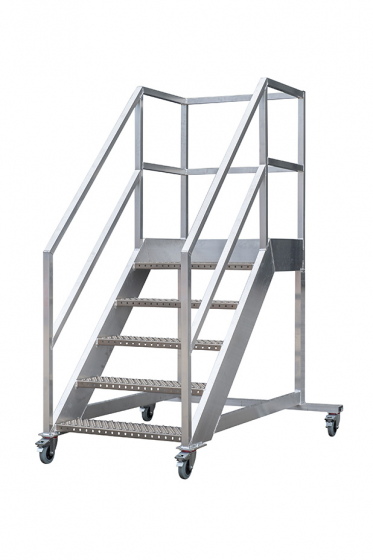Deze professionele bordestrap 6 treden is ontworpen voor de industrie, bouw en logistieke sector. Deze verrijdbare trap voldoet standaard aan de NEN-14122-4✓ en is zeer geschikt geschikt voor zowel binnen en buiten gebruik. De trap is gemaakt onder een hoek van 45° waardoor deze bordestrap comfortabel loopt. Ook met volle handen.De geponste antislip treden van deze trap hebben een breed stavlak en laten (rest)materiaal en vloeistoffen door. De leuningen zijn gemaakt van 4x4 kokerprofiel met afgeronde hoeken voor meer houvast. Het bordes is rondom standaard voorzien van leuningen en schopranden. Wil je een groter bordes of een leuning met open zijde? Dat kan! Dan maken we deze trap op maat! Deze oersterke trap is volledig gelast en na levering direct klaar voor gebruik.